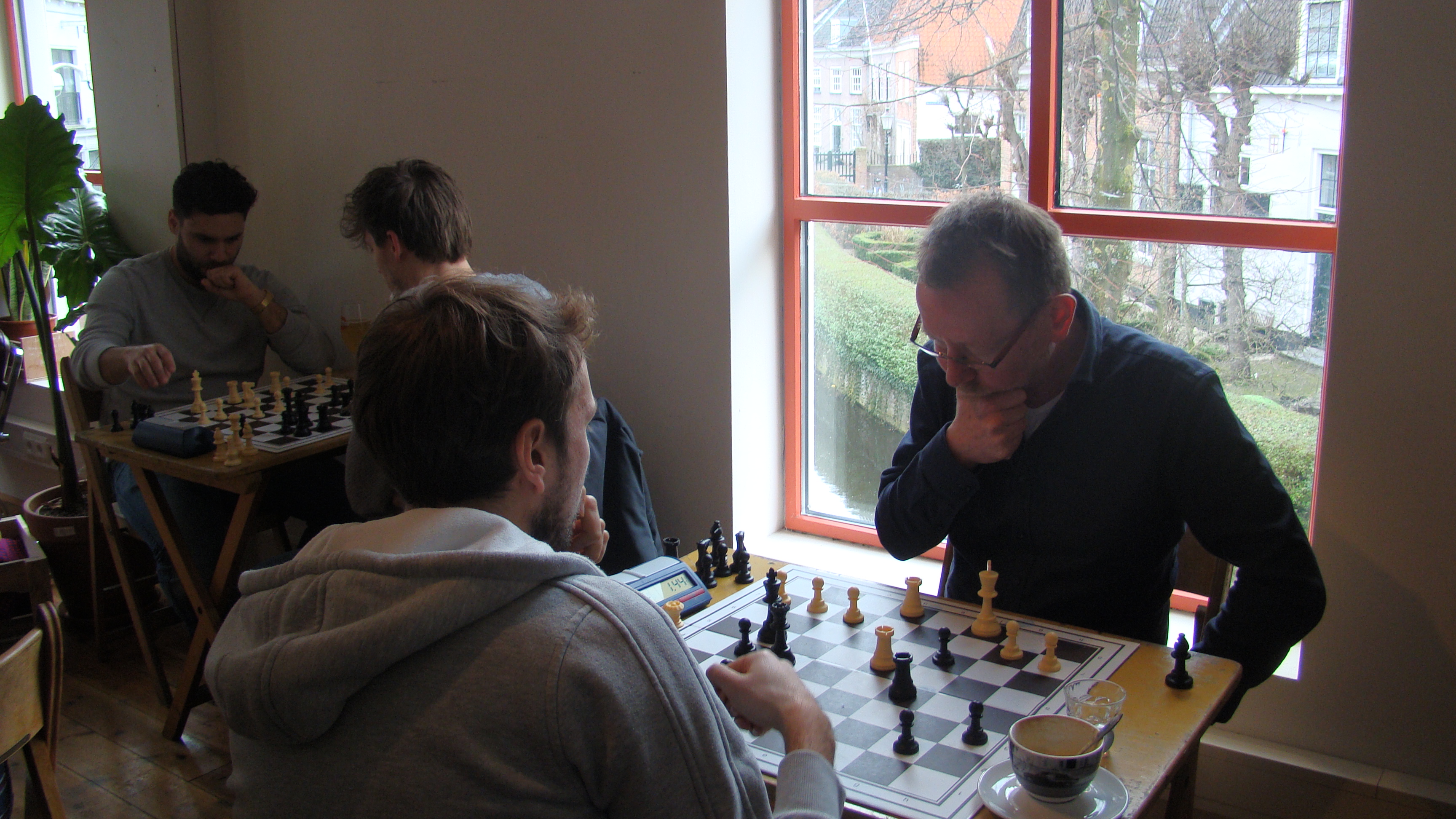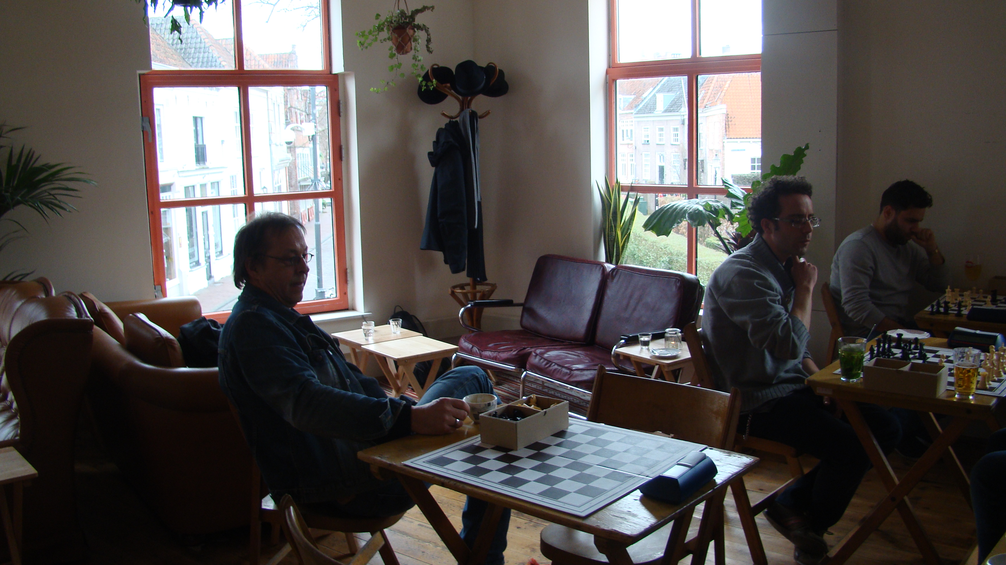 Het Enige Echte Caféschaaktoernooi Van Nederland heeft op zondag 5 maart 2017 voor de 22e keer in de binnenstad van Amersfoort plaatsgevonden. Dit keer deden er 21 teams van 4 schakers mee. De dag begon nog zonnig, maar helaas werd het gedurende de middag toch nog aardig nat. Maar daar laten schakers zich niet door weerhouden.